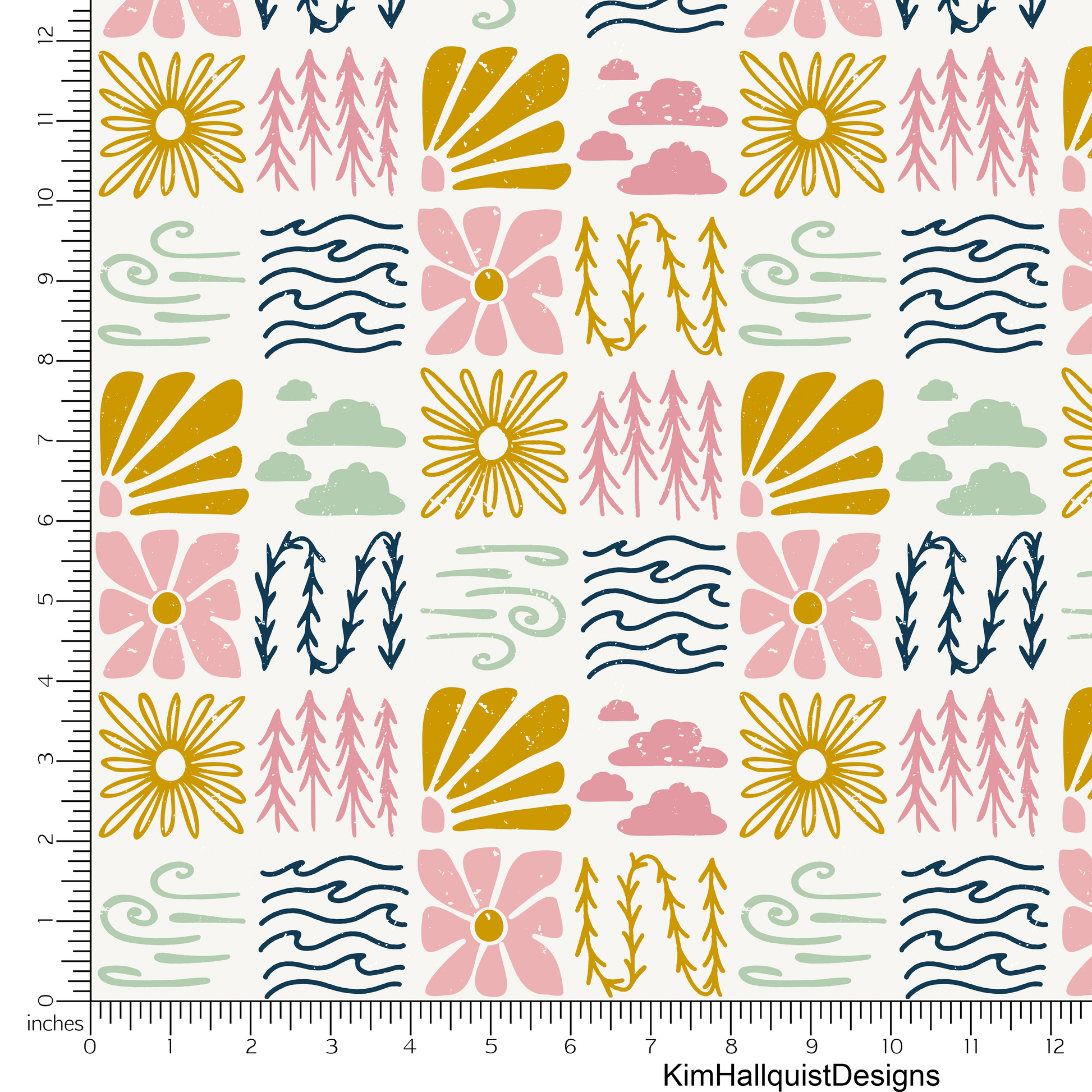 The product image reflects the size/scale at which the design will be printed on the fabric. Please reference the photo and ruler for scale/sizing guidance.