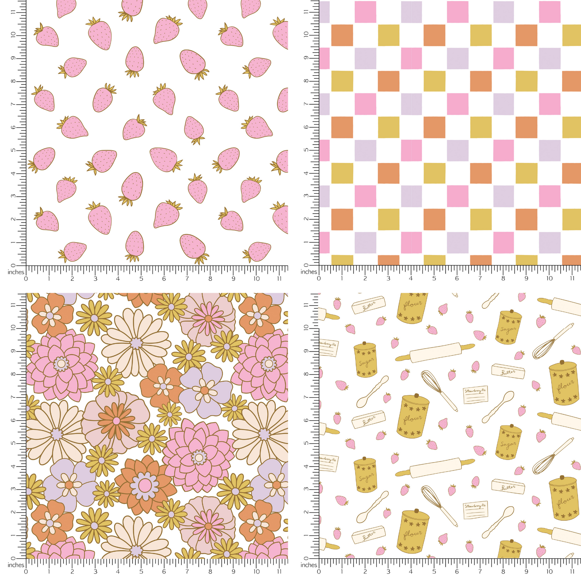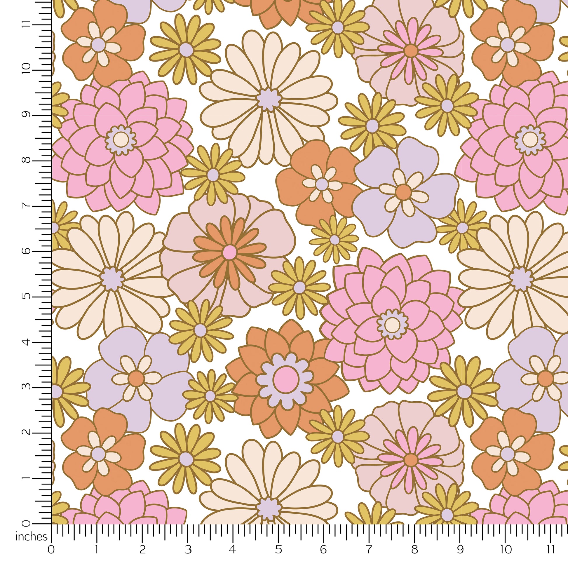 The product image reflects the size/scale at which the design will be printed on the fabric. Please reference the photo and ruler for scale/sizing guidance.